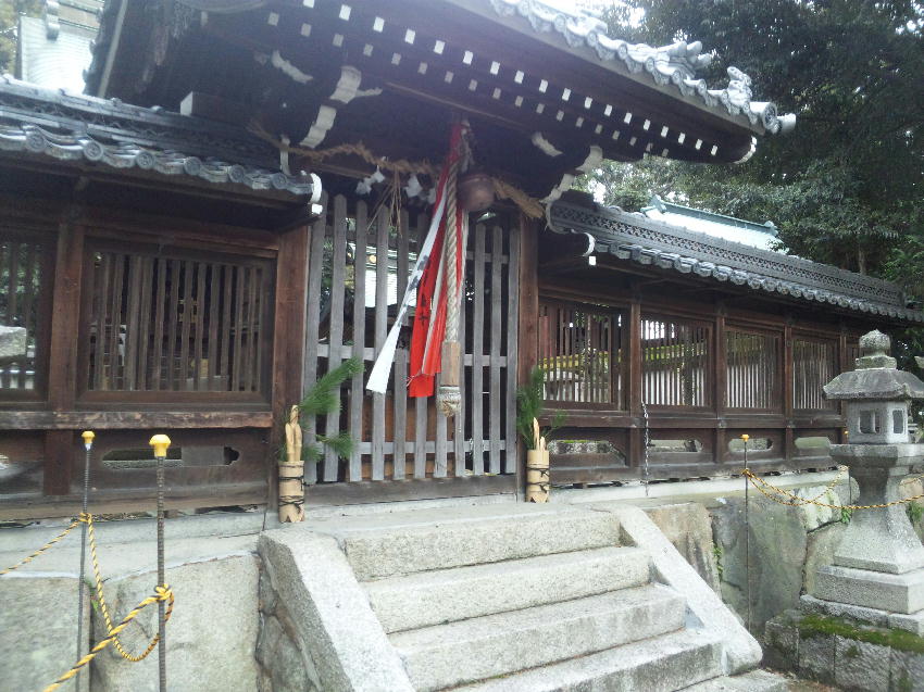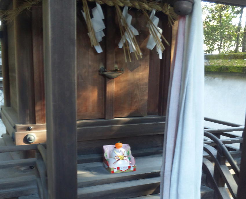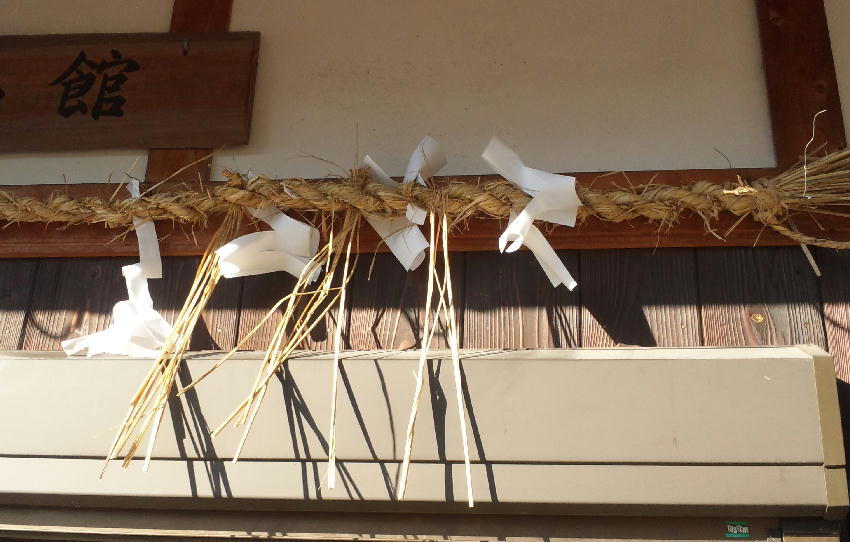 鳥居や本殿、拝殿、それぞれの建物等にしめ縄と門松を取り付けました。