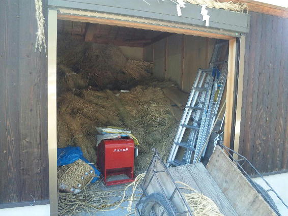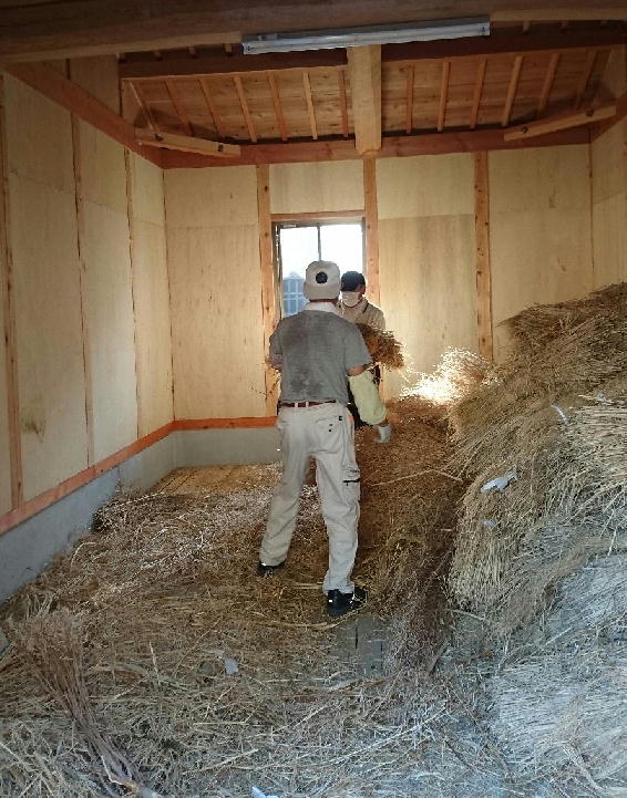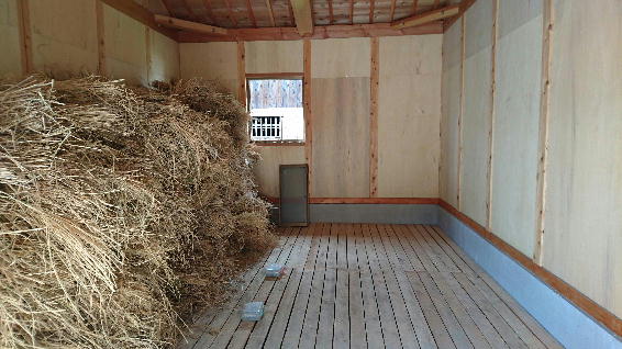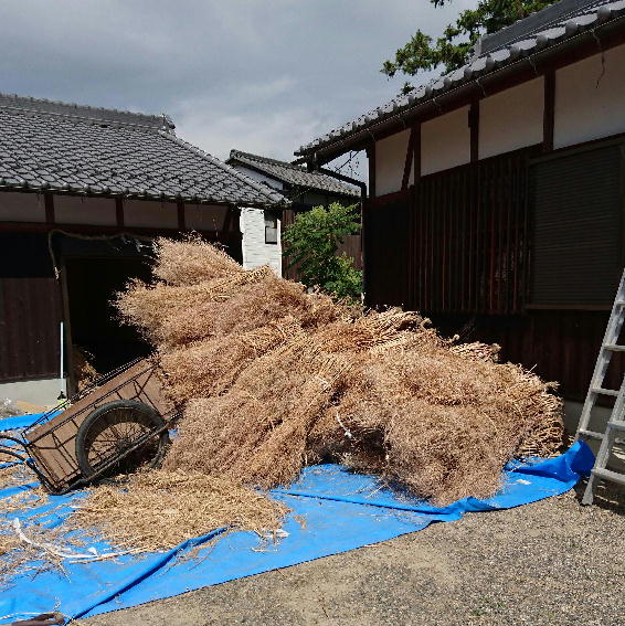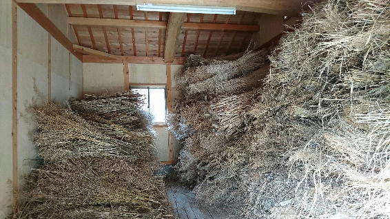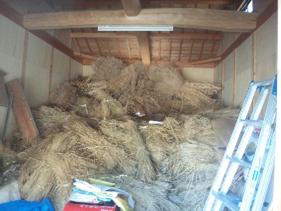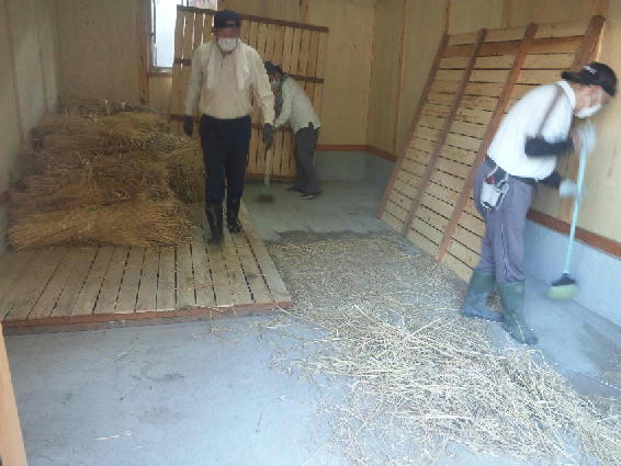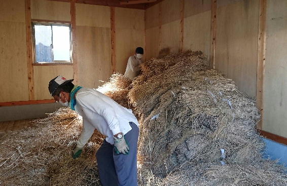 9月2日から3日にかけて倉庫内の藁と菜種柄を年度ごとに使えるよう左右に分けました。床にはミザラを高く敷き風通しがよいようにしました。