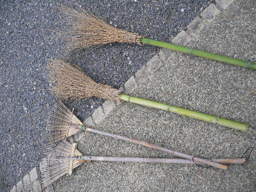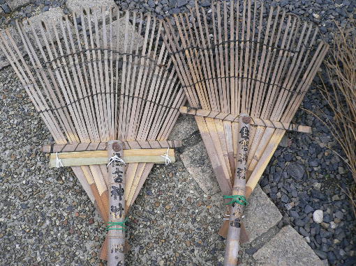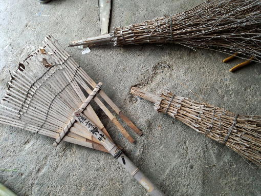 傷んだ木の葉かきや竹ほうきの修理を総代で実施しました