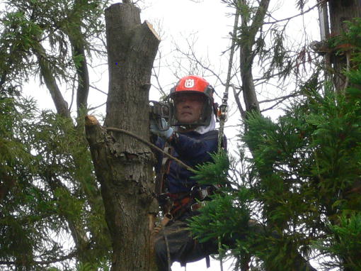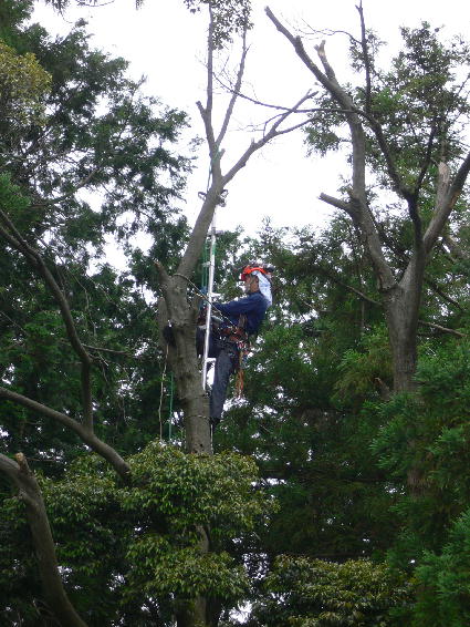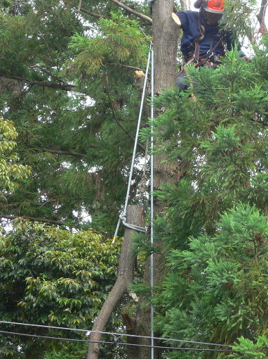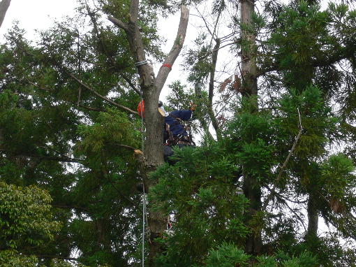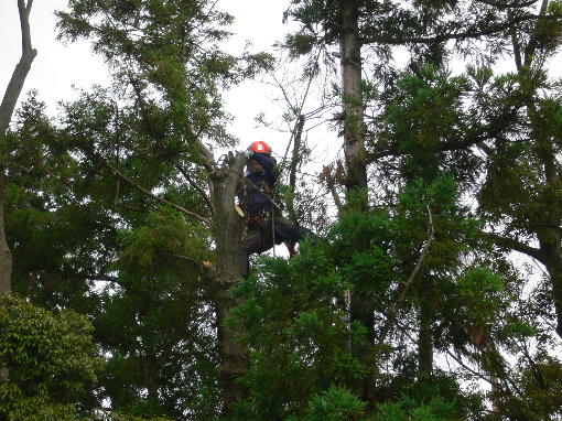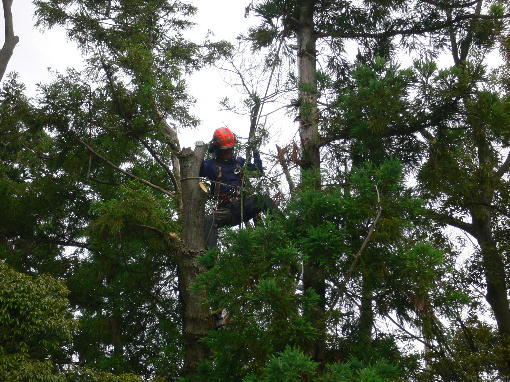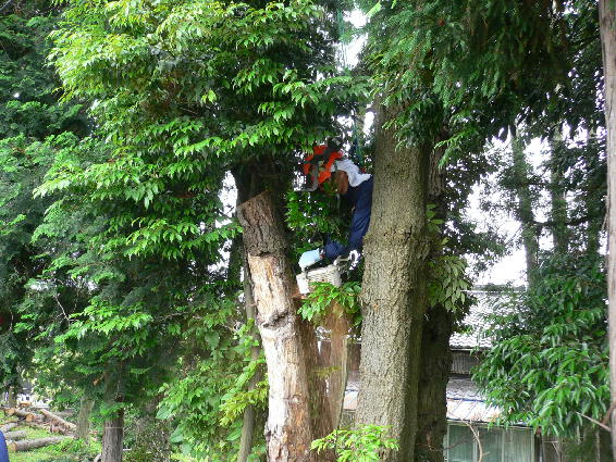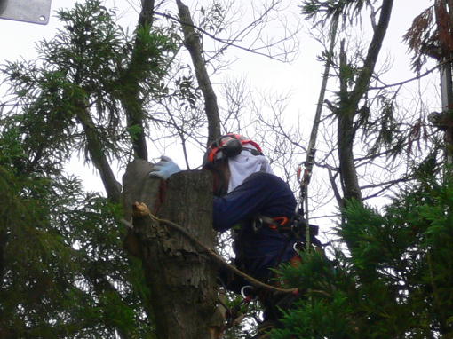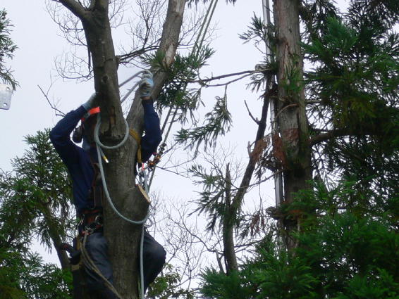 4叉前右の太幹を上から順に切り刻んでいく。一本一本細枝から太枝と そして幹を上から