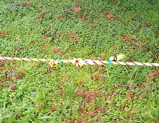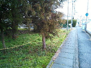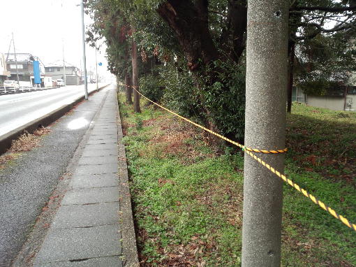 今年度の取り組み課題の一つであった鎮守の森内での枯れた太枝やスズメバチ対策の一つとして県道からの侵入をなくすためのロープ張りを行いました。過日行いました啓発立て札の設置に引き続いて行った作業です。