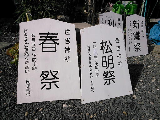 祭礼毎に神社入り口に駒札を立てますが、紙に書いていたものを薄い板に書いて通知するようにして工夫をしました。