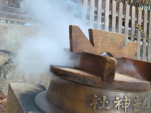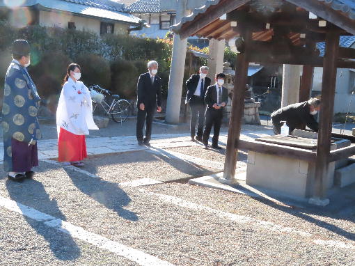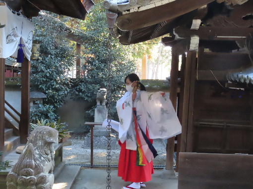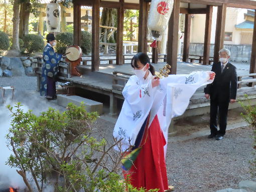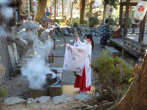今年度は毎年の御弓式なども中止としていることもあって巫女さんによる神楽舞に引き続き献湯式を特別行った。